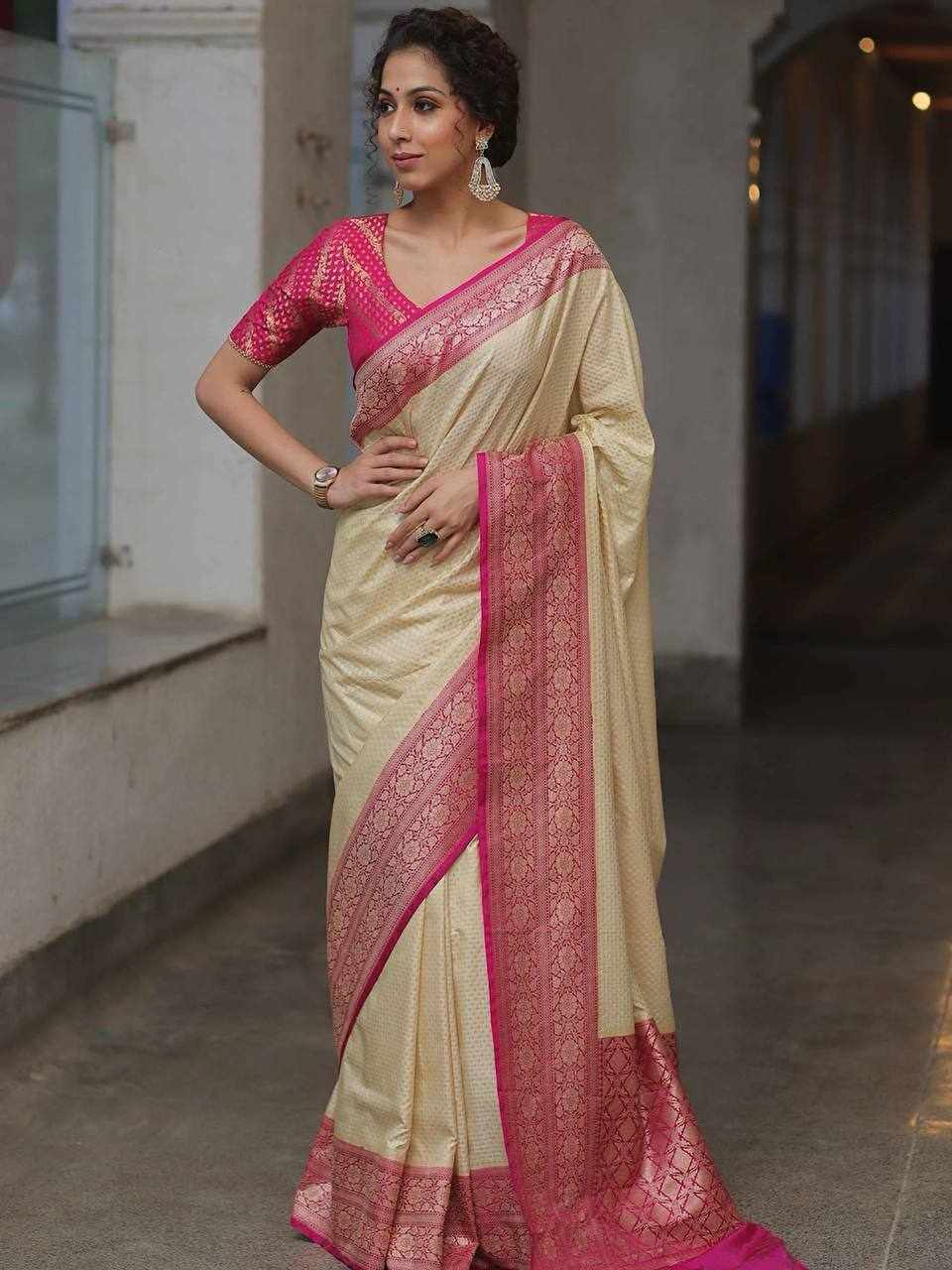 KP-R 279 SOFT LICHI SILK CLOTH Cream Color Saree