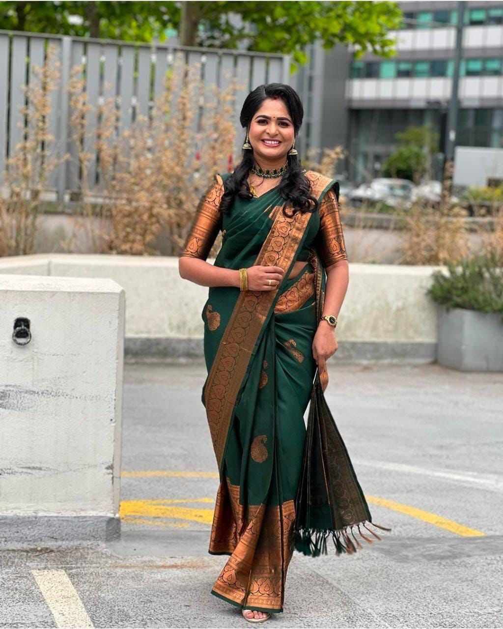 MF 2030 NEW BEAUTIFUL JACQUARD WORK ON GREEN SAREE