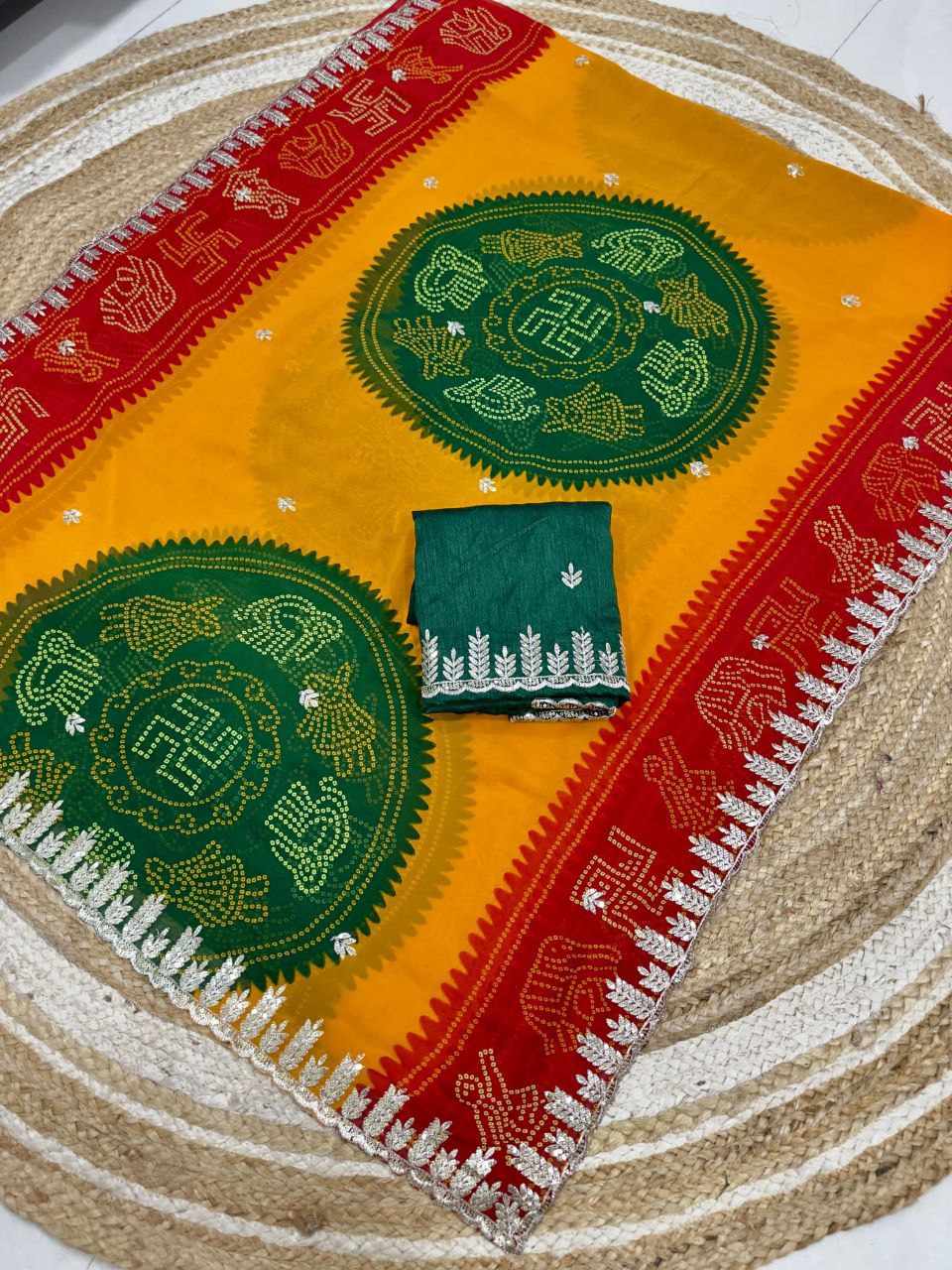| Name : | PIYU 1055 KHAJURI BORDER-4 YELLOW-RED SAREE |