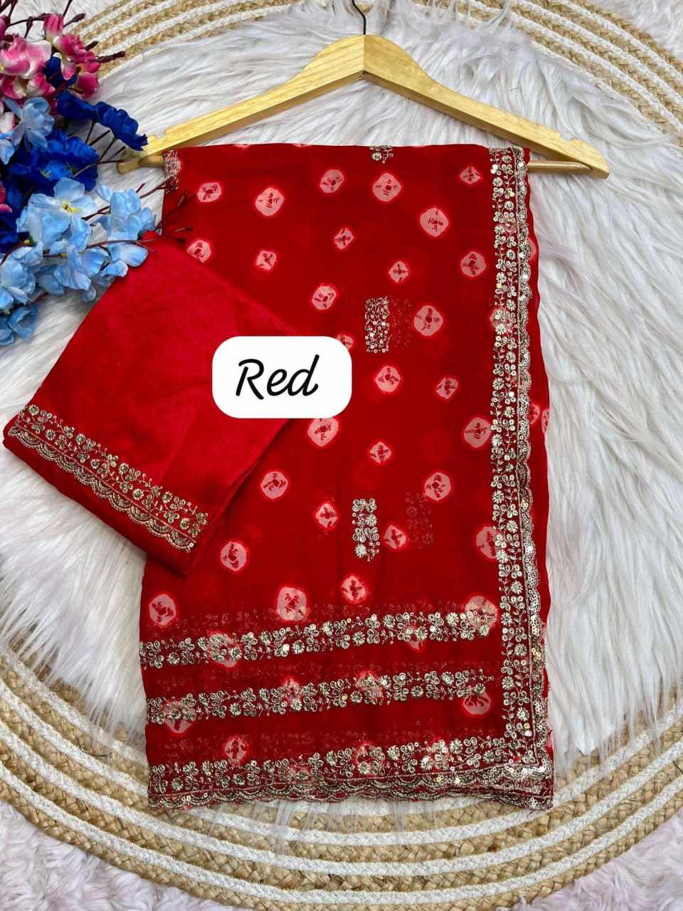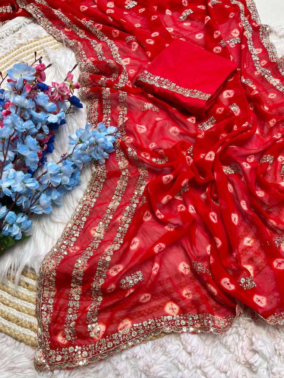 PIYU P1057 LEHERIYA COIN RED SAREE