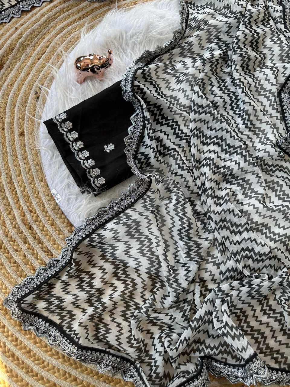 Crafted with graceful georgette and detailed coding embroidery lace work, this saree gives a rich and classy look. Perfect for festive occasions, parties, weddings, and special celebrations.
