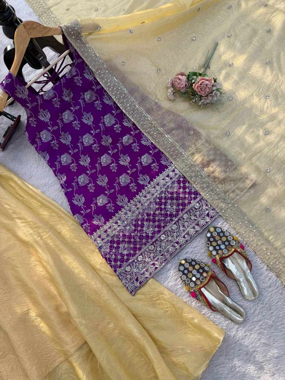 Pc 522 Pure Tissue Simmer Real Handwork and Read Diamond Work Crop Top Lehenga